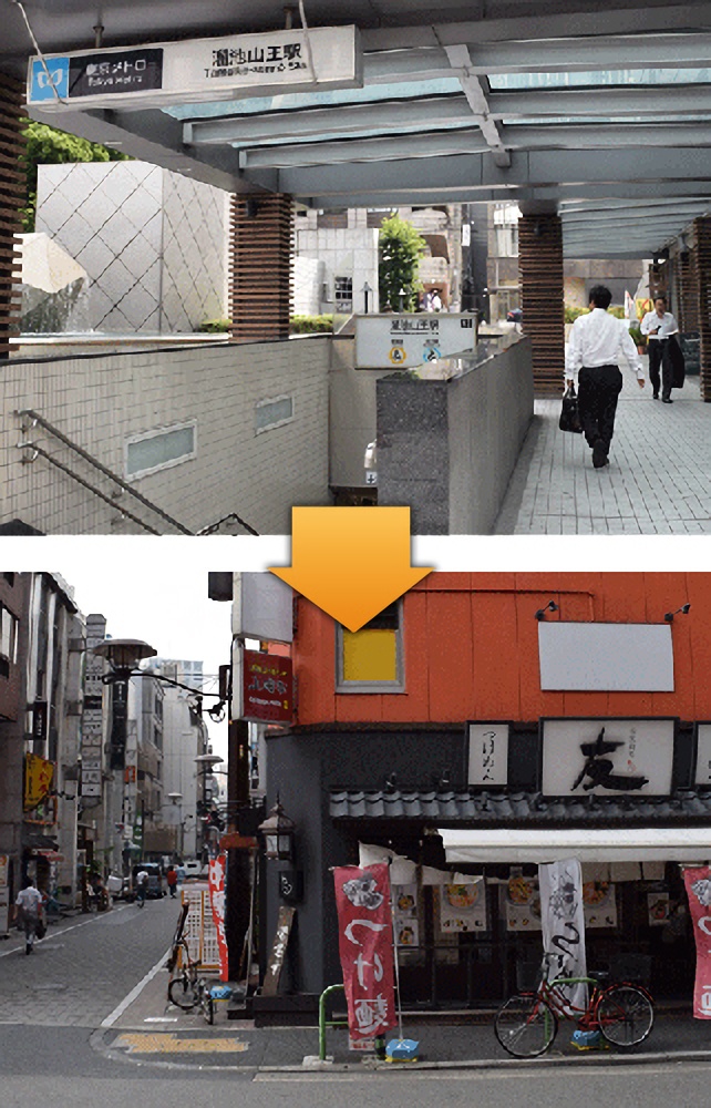 溜池山王駅『11番』出口を出たら、写真の『つけめん友』の付近までご移動いただきます。 わかりにくい場合はお気軽に